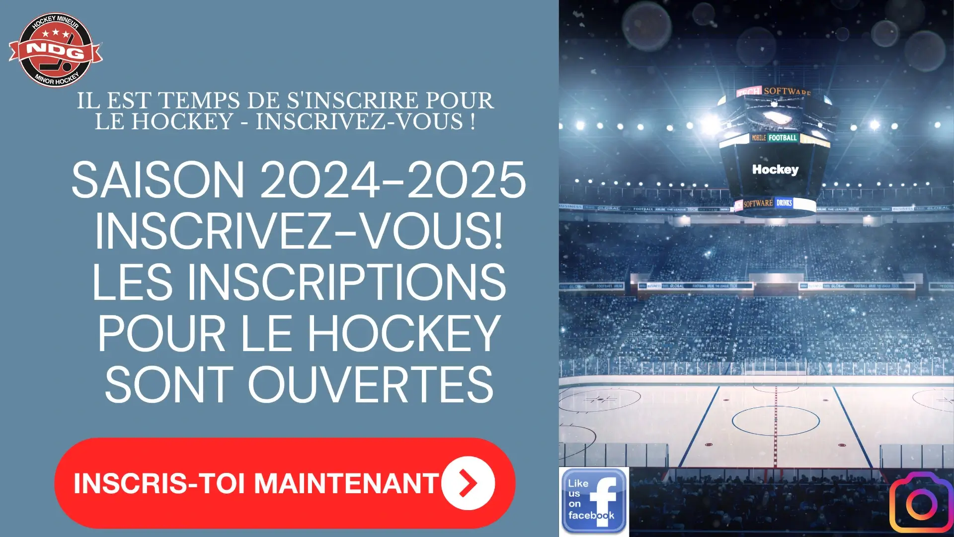 Pour la procédure d’enregistrement étape par étape, rendez-vous sur notre site Web (www.ndghockey.com) sélectionnez l’onglet Infos puis Bibliothèque et vous trouverez la procédure d’enregistrement sous Fichiers.