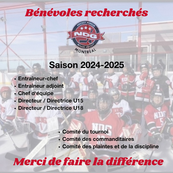 Intéressé à rejoindre notre équipe ? Contactez Brenda Gallant à brendagallant (a) ndghockey.com pour en savoir plus sur les postes disponibles et comment vous pouvez vous impliquer. Travaillons ensemble pour faire de cette saison la meilleure à ce jour !
