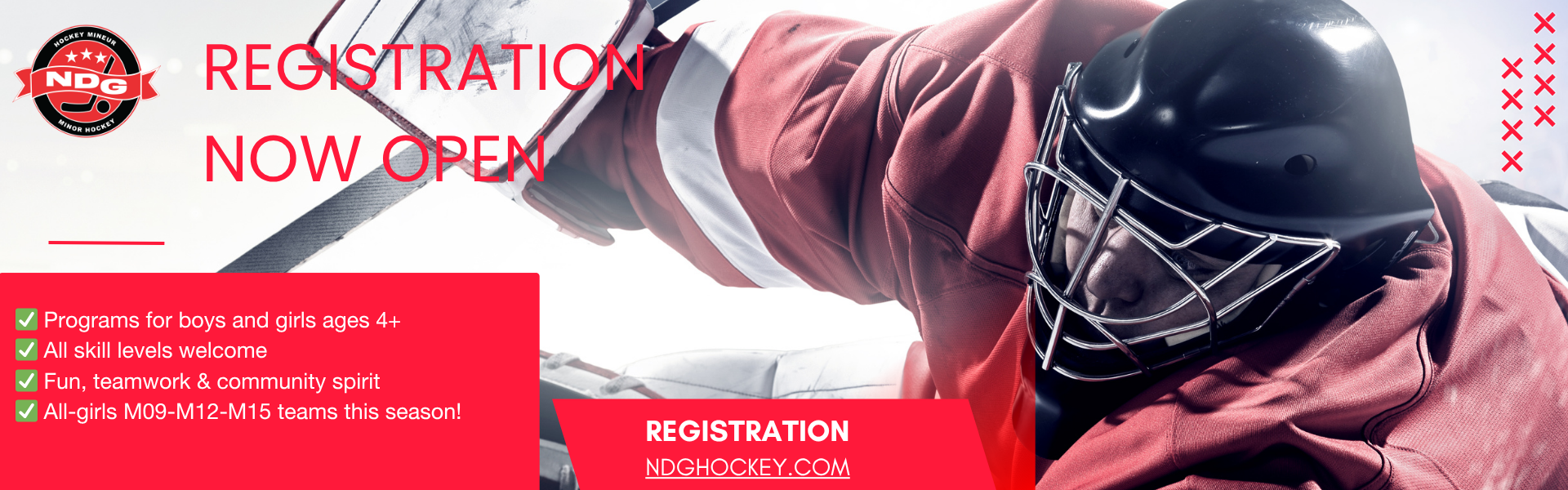 M15 Girls team: NDG Hockey will have an M15 girls team in addition to M9-M12 girls teams.